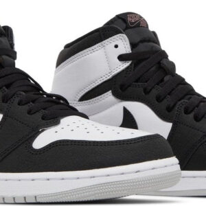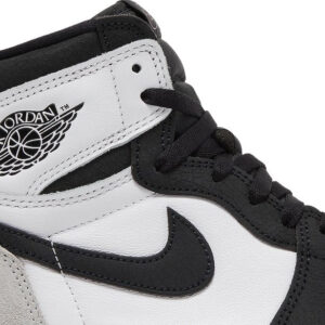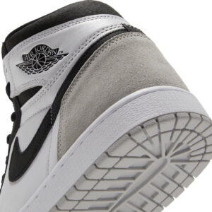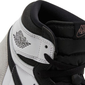 The Air Jordan 1 Retro High OG ‘Stage Haze’ features neutral tones on the foundational sneaker that started it all. The upper combines a white leather base with a grey suede heel overlay and a forefoot overlay in cracked black leather. Matching black accents settle on the signature Swoosh and a retro Wings logo stamped on the lateral ankle. Nike branding is outlined in Bleached Coral on the woven tongue tag. delivering a subtle flash of color. The high-top rests on a rubber cupsole that pairs white sidewalls with a grey rubber outsole.