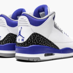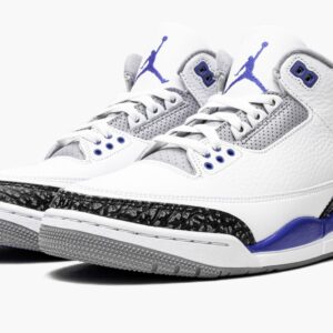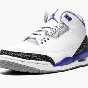The Air Jordan 3 “Racer Blue†is a July 2021 release of Michael Jordan’s third signature shoe in a highly wearable colorway. The “Racer Blue†joins popular Air Jordan 3s like the original “True Blue†colorway and non-original “UNC†and “Knicks†colorways in featuring blue on its design. Here, white tumbled leather forms the base of the upper. Grey elephant print can be found on the toe and heel. The variation of elephant print that appears on the “Racer Blue†is darker than the material found on many Jordan 3 releases. Elsewhere, Jordan Brand places dotted Racer Blue leather on the collar. The deep blue hue also graces the painted mid-panel as well as the Jumpman on the heel and embroidered Jumpman on the white tumbled leather tongue. Racer Blue eyelets, white laces, and a visible Air bubble in the heel of the white midsole complete the look. Release date: July 10, 2021